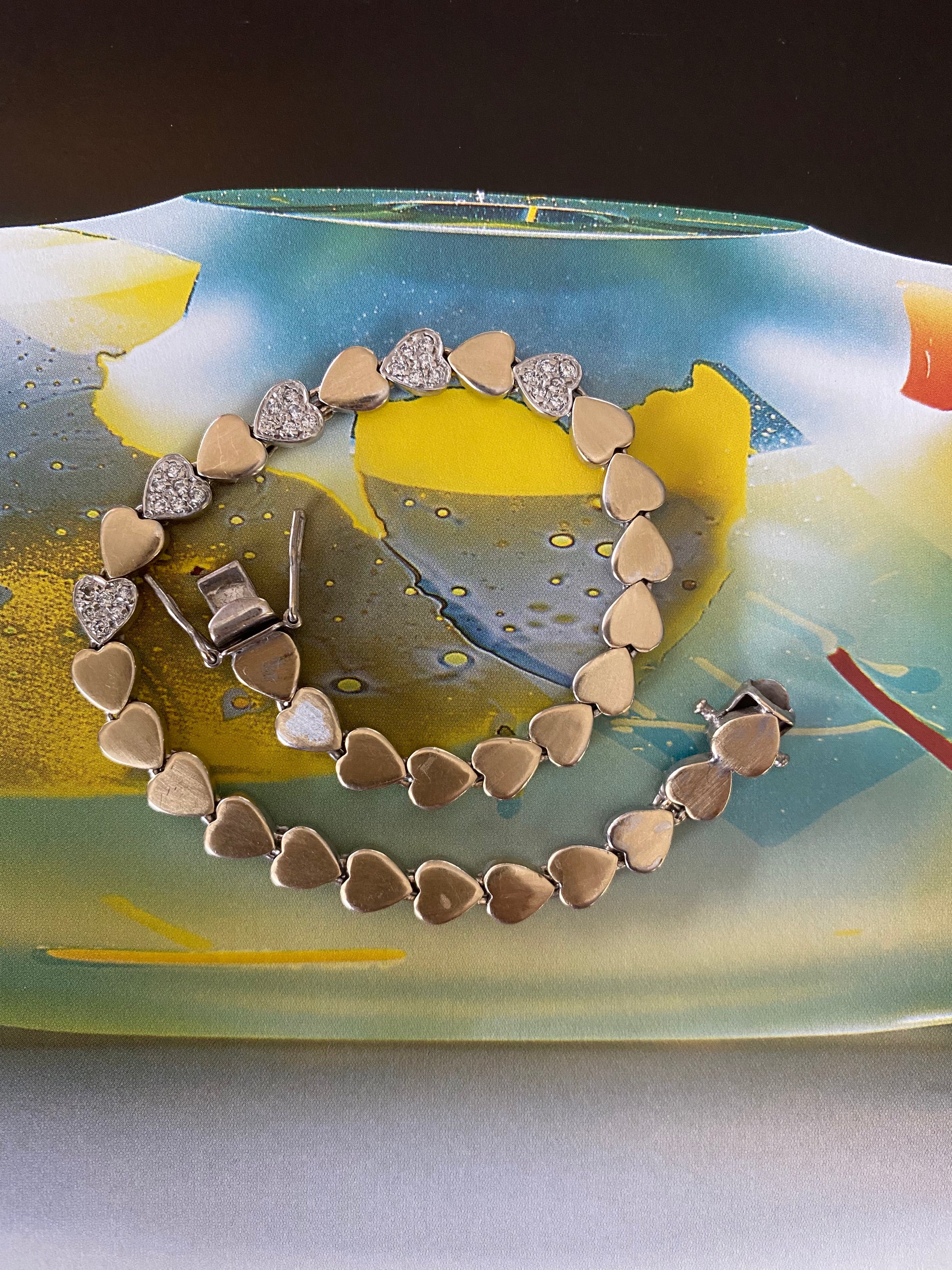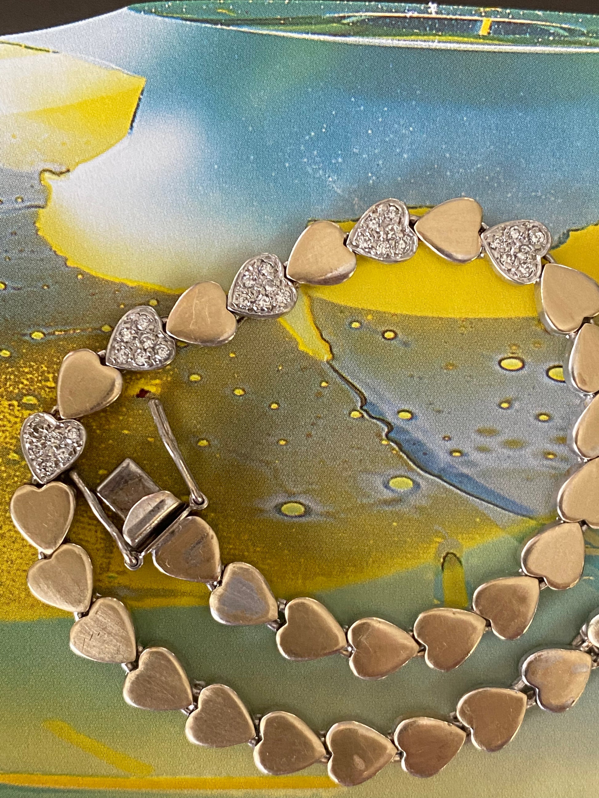 14k Two-tone Heart Link Bracelet