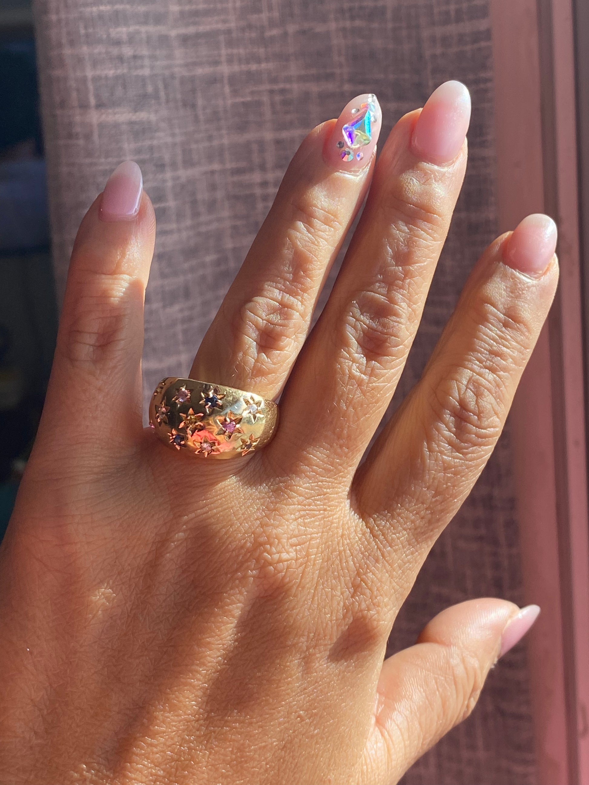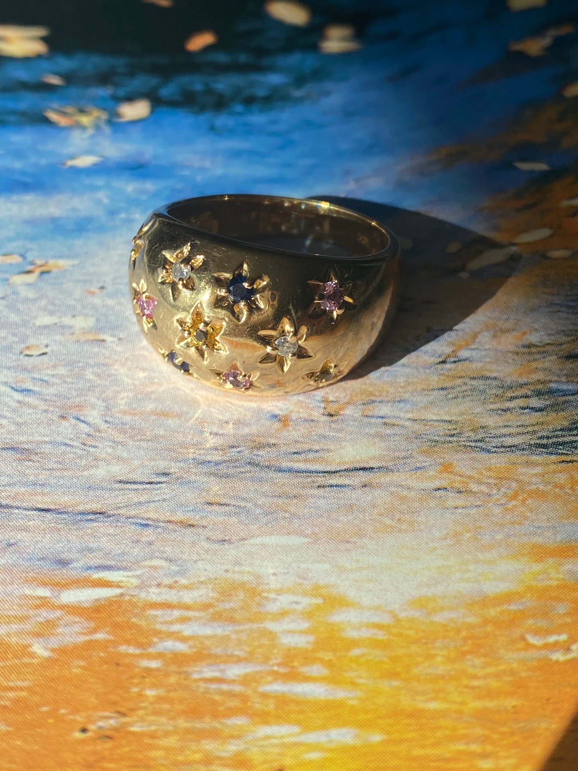 14k Multi-color Sapphire Dome Ring