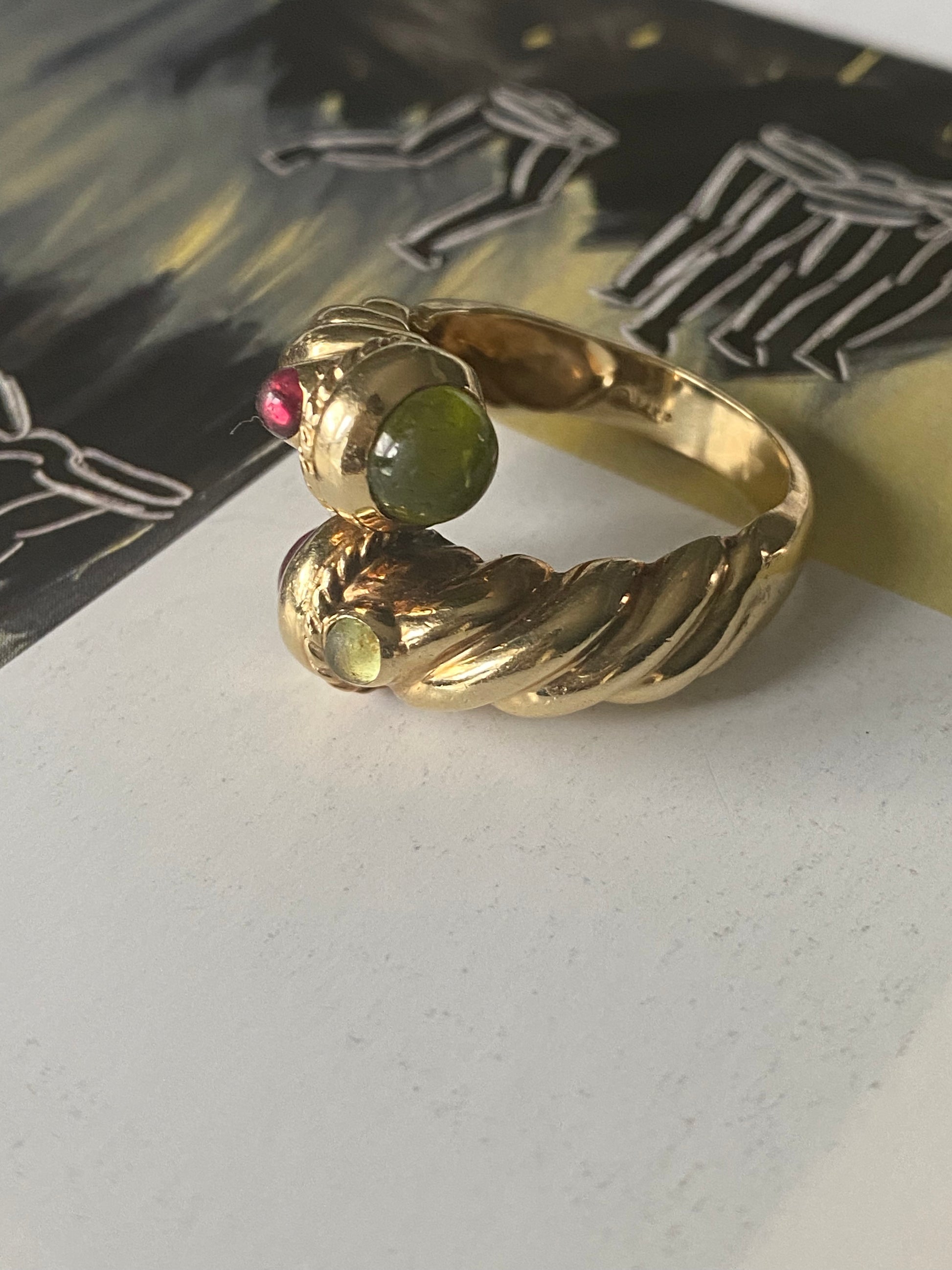 peridot shows unpolished/rough surface on stone, doesn’t appear to be damaged, could also be some sort of residue, refer to photos