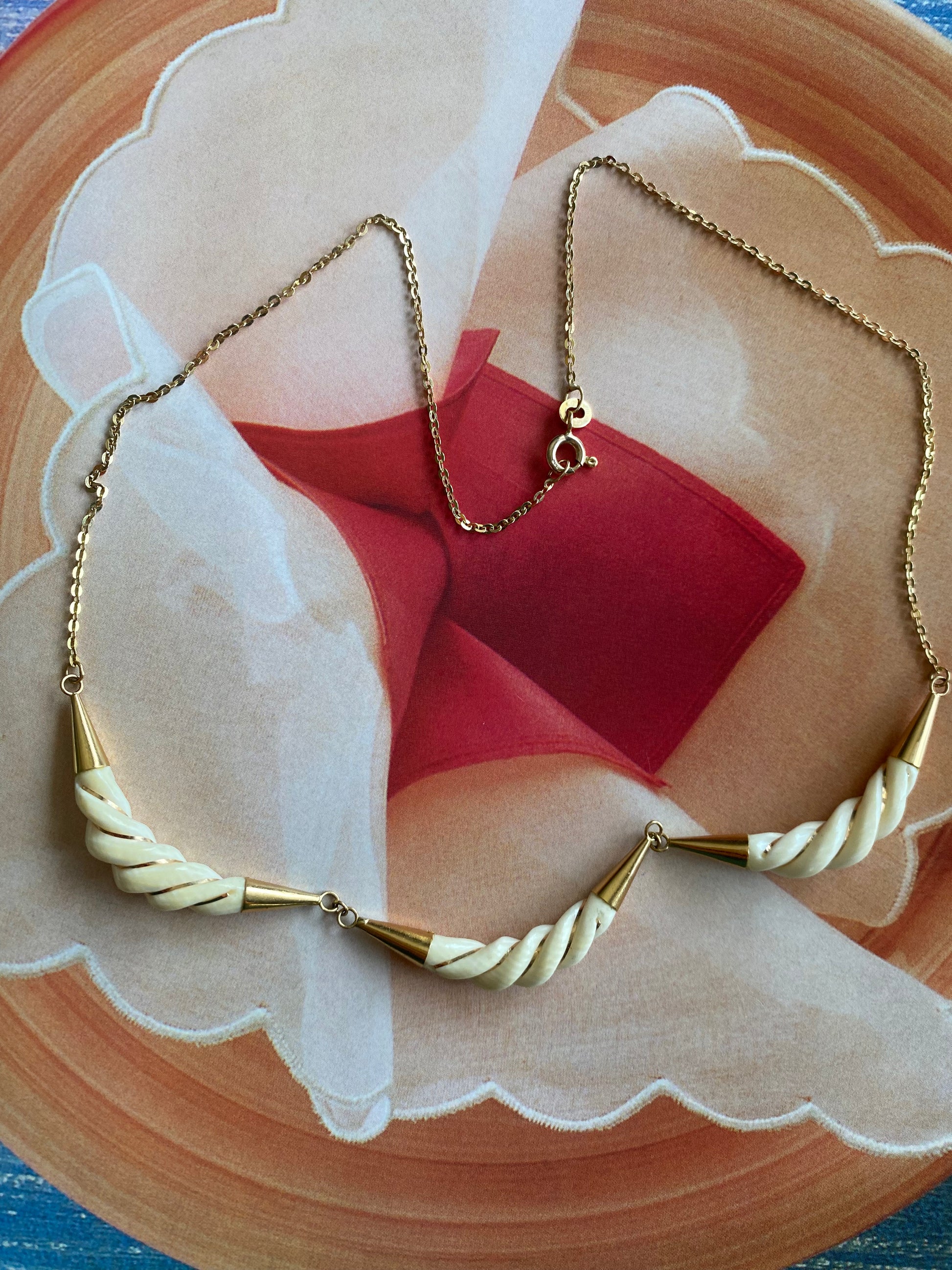14k yellow gold/carved bone