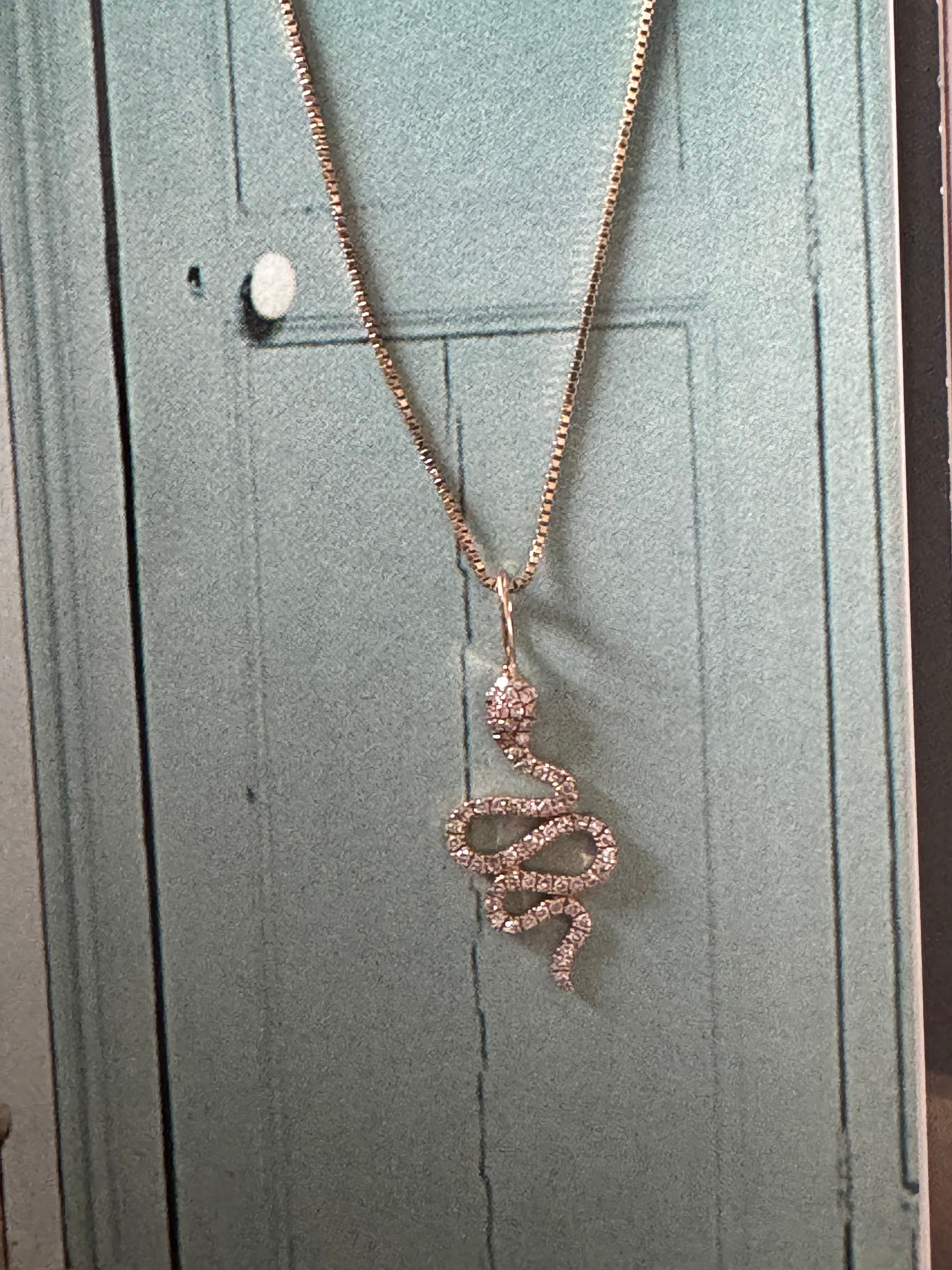 14k yellow gold snake charm with natural diamonds (9mm x 18mm)