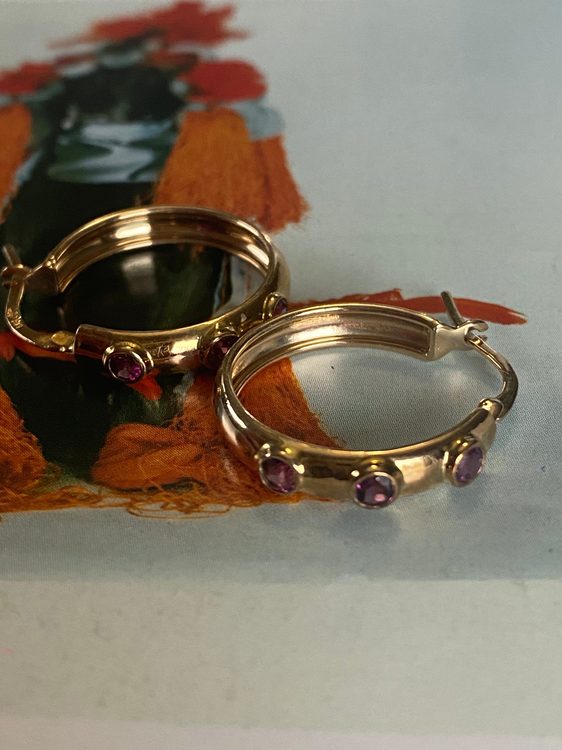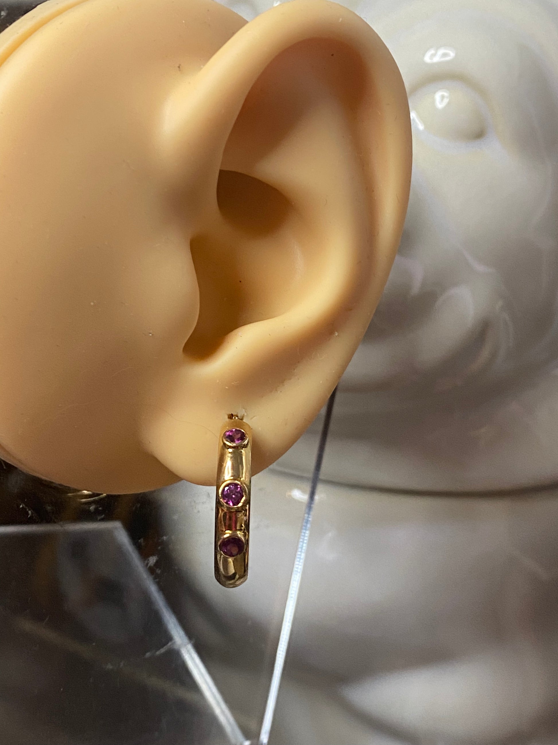 14k Rhodolite Garnet Hoops